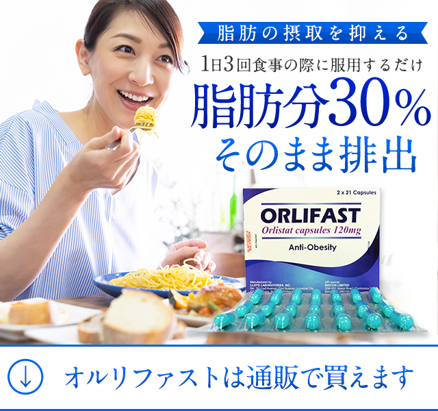 Orlifast(オルリファスト)は、有効成分のオルリスタット(オーリスタット)を含有した肥満症治療薬です。食事を抑えるのではなく、体内での脂肪の取り込みを阻害するため、大きな食事制限なしで脂肪の摂取を抑えます。